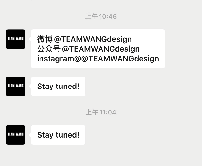去不了实体店的小伙伴们也不用难过!只要动动你们的小手指关注TeamWangdesign的公众号,即将上线的小程序功能也可以直接线上购买。