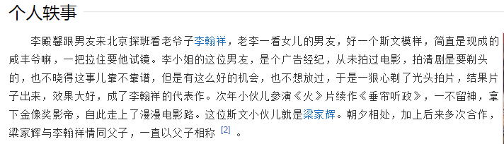央广网娱乐大概是不想明说,其实坊间一直流传着导演女儿李殿馨和梁家辉交往的八卦。