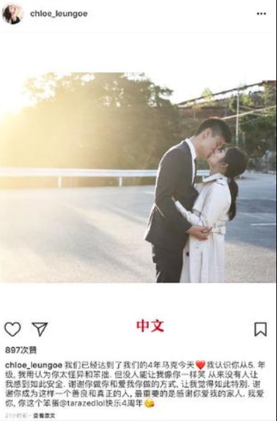 她发文说,自己和男友已经相恋四年,认定彼此是往后余生的另一半,「没人能像你一样让我笑得这么开心,没有人能让我如此有安全感,谢谢你用这样的方式爱我,让我觉得我是世界上最特别的人」。