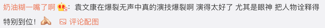 袁文康通过神态和眼神把徐文杰的优柔寡断,摇摆不定演绎的十分精准。压抑而克制的表演,分寸拿捏得非常准确。导演忻钰坤评价袁文康说,“他的身上有一层让人看不透的神秘感”。很多观众也对其表演大加赞赏。