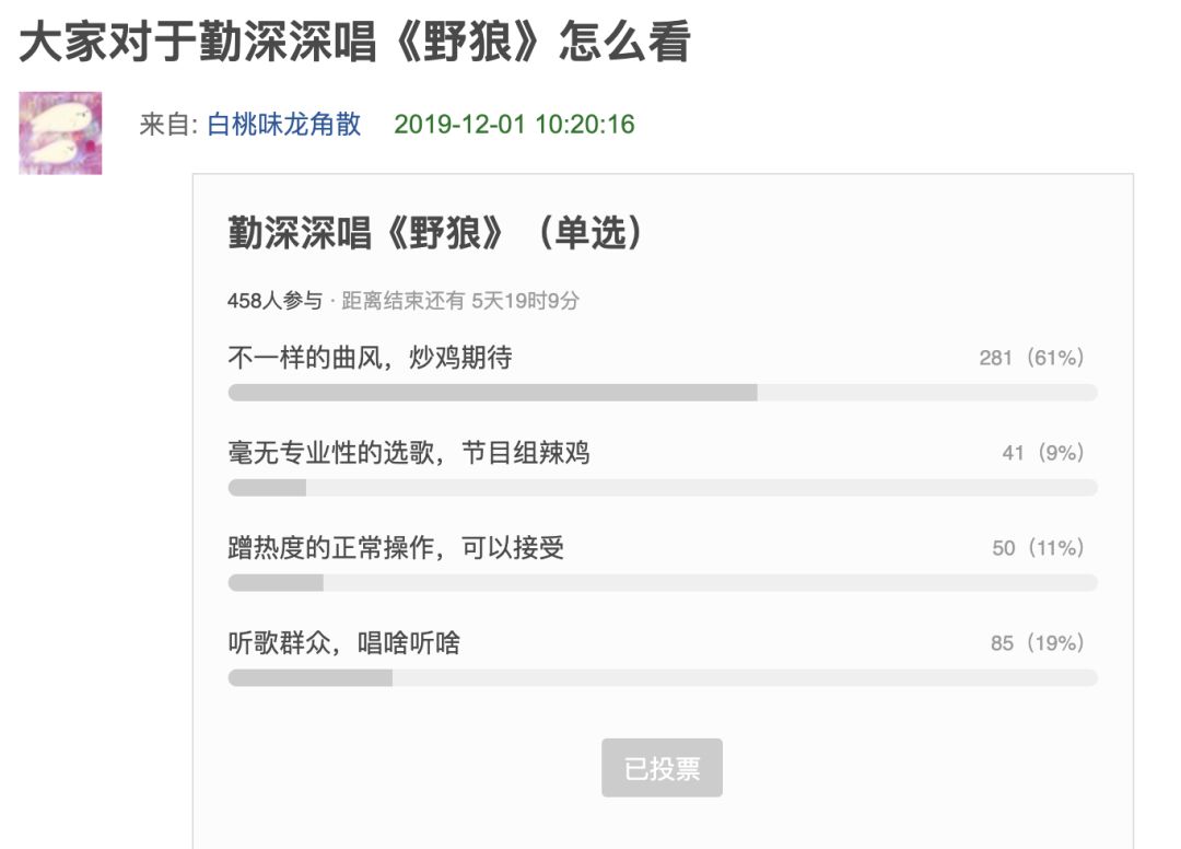 我被李克勤翻唱的《野狼disco》给惊到了! 果酱音乐 港台男星 2019-12-02 22:32:41 1068 创作不易,用心坚持,欢迎请BaGua喝几杯爱心咖啡!打赏并支持本文 打赏并删除本文 昨晚《我们的歌》第五期播出,终于迎来终极排位赛。预告一出,豆瓣小组直接了当的上了投票:大家对勤深深组要合作《野狼disco》怎么看?是抵触节目组蹭神曲的热度or还是很期待?在周深和李克勤的实力加持下,结果为四六开,还是有不少选歌垃圾的声音存在:《野狼disco》,不行。这首2019年度最火歌曲,在爆火的同时也存在大量抵触:“真的太土了,欣赏不来。”更别说在《我们的歌》这样主打专业的平台,多少显得有些违和。就像这位知友来现身说法,正是因为听了李克勤的《月半小夜曲》,所以意识到《野狼disco》的粤语就是在哗众取宠——像吃了苍蝇一样反胃。但......如果就是李克勤本人来翻唱呢?看完节目的我来告诉你,真的是太绝了。这首《红日》版《野狼disco》,当属果酱君的心中翻唱No.1。| 大型真香现场虽然在和「街头拍档」的battle中,「勤深深」以7票之差惜败,但光论现场表现力,他们绝对算得上是本期第一。比如12小时没到,就能杀上B站娱乐区第二。刚开始其实有点担心他们放不开,这样一首「社会摇」的歌可能不太适合两位擅长静静唱歌的人,但事实证明我想多了。先是墨镜一带,谁都不爱。现学的迪斯科?没事儿!不管三七二十一,先左边一起画个龙,再右边画一道彩虹,自己得先嗨。他们俩一位像是不知天高地厚翘着尾巴耍帅的萌萌狼崽子,一位像是放下身段陪着崽子胡闹欢脱的狼王。两头“野狼”自嗨完不慌不忙的走下台,不管是观众还是嘉宾主持人,一起来“捂住脑门,晃动胯胯肘!”总之大家一起来蹦迪 创作不易,用心坚持,欢迎请BaGua喝几杯爱心咖啡!打赏并支持本文 打赏并删除本文 感谢您的支持鼓励,我会继续努力的!文章地址:用户邮箱:打赏金额:USDT 请输入数字点击”去打赏“,即可进行打赏支持本文章哦 李克勤 About the Author 果酱音乐 功能介绍:果酱音乐是国内领先的音乐新媒体,推荐优秀的作品,提供深度的报道。我们既强调音乐的娱乐属性,也推崇它可贵的人文价值。 官方认证:南京果酱文化发展有限公司 Related Posts 二手玫瑰魔改罗大佑神作,谁听谁疯! 2021-12-11 20:28:09 大张伟,你别再“装”了 2021-12-07 20:27:29 李荣浩一发新歌就被骂,我挖了挖背后的原因… 2021-11-03 20:27:22 王菲新歌刷屏,一开口让千万人泪崩... 2021-09-26 20:27:51 林志炫,你该拿出真本事了! 2021-09-12 20:27:33 发表评论