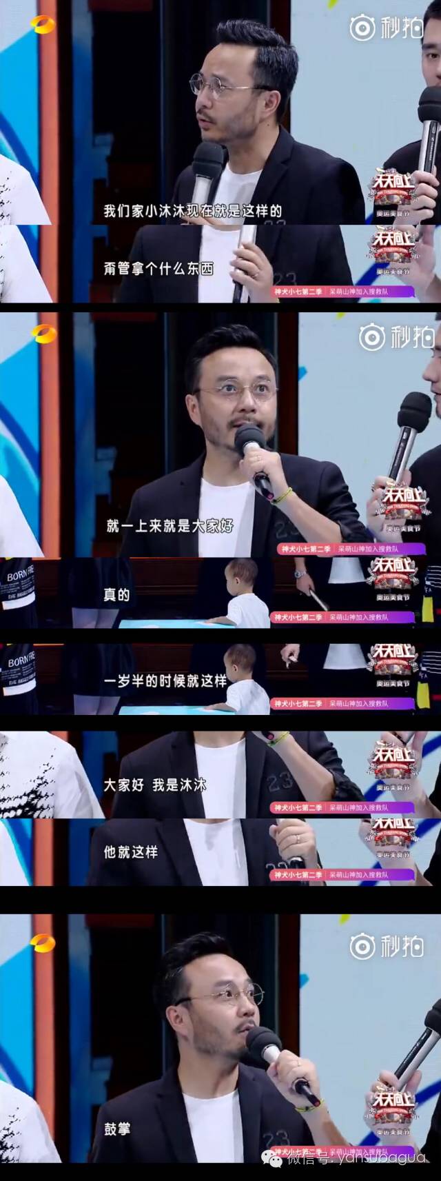 主持人的娃就是会有样学样,汪涵爆料小沐沐现在是手上拿到什么就开始自我介绍:大家好,我是小沐沐,大家鼓掌!o(≧v≦)o~