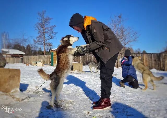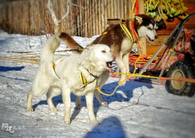 七八只哈士奇拉一个人雪橇,有训犬员站在座位后面控制方向和速度,所以不用担心翻车……但如果你拍照时忘乎所以,还是需担心一下镜头盖、帽子、相机套(一个灿烂的微笑)。