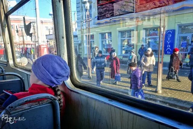 车内很像北京的公交三张门,帝都也有不少有轨电车,拖着长长的身躯连通城市角落,只不过这里的司机被关在了封闭的小房子里,只有一个很小的窗户跟外界对话,因此全程连背影都没瞅到。售票员拿着像POS的机器售票,比北京依旧扯小纸片高级多了。