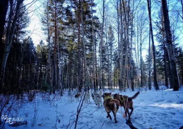 穿梭在蜿蜒的跑道,沿途阳光斜洒林间,白桦林唆地发驰而过。想象自己也是一只雪橇犬,被解放后恨不得绕着林子转十圈,用欢喜打破白桦林的静谧!