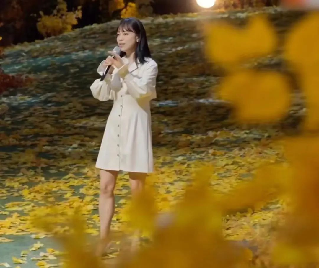 这张照片是黄绮珊最近参加综艺《时光音乐会》的节目现场图,白裙飘飘,长发披肩,身形纤细,整个人大变样,化身美少女。