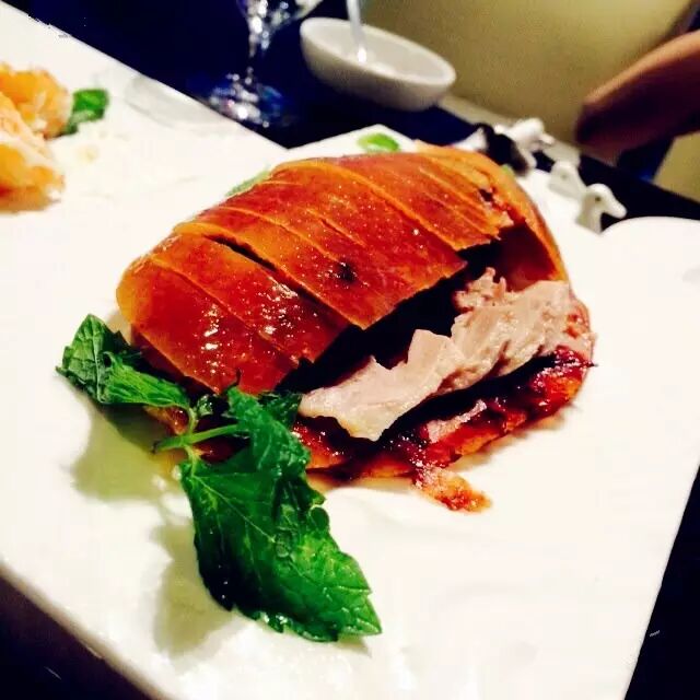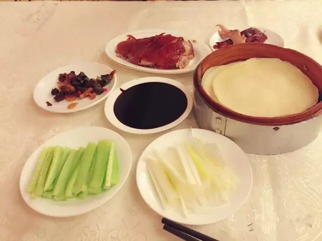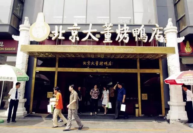 大董的鸭子不是好在味道,而是新在配料。他家创新的八种调料,三种吃法,非常有特色:酥脆的鸭皮蘸上白糖, 入口即化;荷叶饼抹上甜面酱,放上葱条、黄瓜条、萝卜条,卷上几片肥而不腻的鸭肉,回味无穷;片好的烤鸭蘸着蒜泥、甜面酱单吃,鲜香中增添了 一丝辣意,风味独特。其他京味儿菜也是色香味俱全。