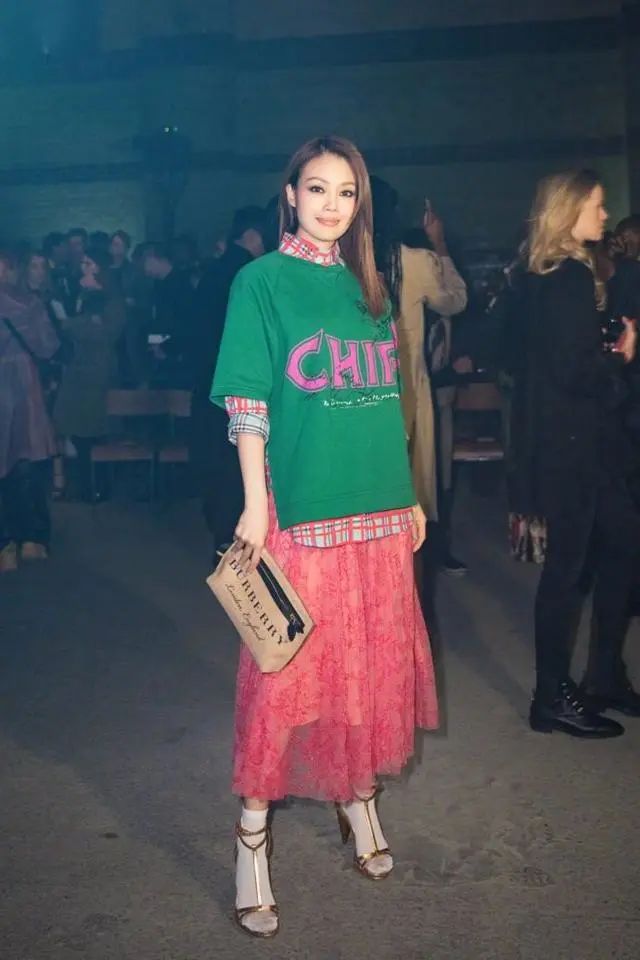 这身搭配利用了撞色和混搭,颜色选取的也是非常大胆,高饱和度吸睛又衬得容祖儿很有活力,绿色的字母短袖平平无奇,但是叠穿红色格子衬衣就立马变得时髦起来。更显俏皮可爱的是红粉色碎花裙,少女感十足,休闲与甜美风格的混合可以说是个性鲜明,赚足了回头率,祖儿的穿搭很有创造力哦。