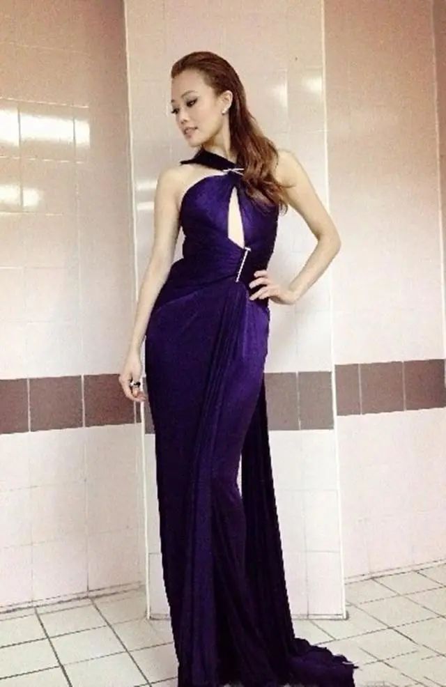 容祖儿这次的礼服裙这次选取了优雅又高贵的宝蓝色,比较贴合身材的设计,衬的容祖儿前凸后翘,上半身的设计也是一大亮点,胸口挖空的造型很吸睛哦,和谐又好看,上半身交叉造型的设计,让脖子和腰部的线条看起来有纤细柔弱的美感,点缀的金属配饰尽显低调奢华感,展现优雅大气的姿态。