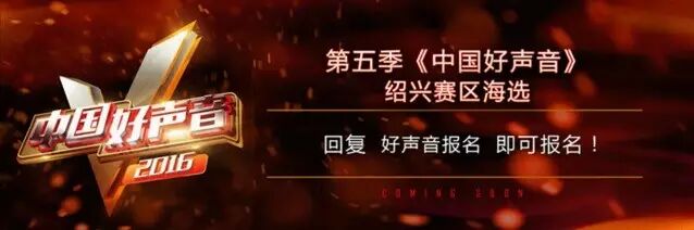 另外2016《中国好声音》全国城市海选绍兴赛区正在如火如荼的进行中,大家快来报名吧。