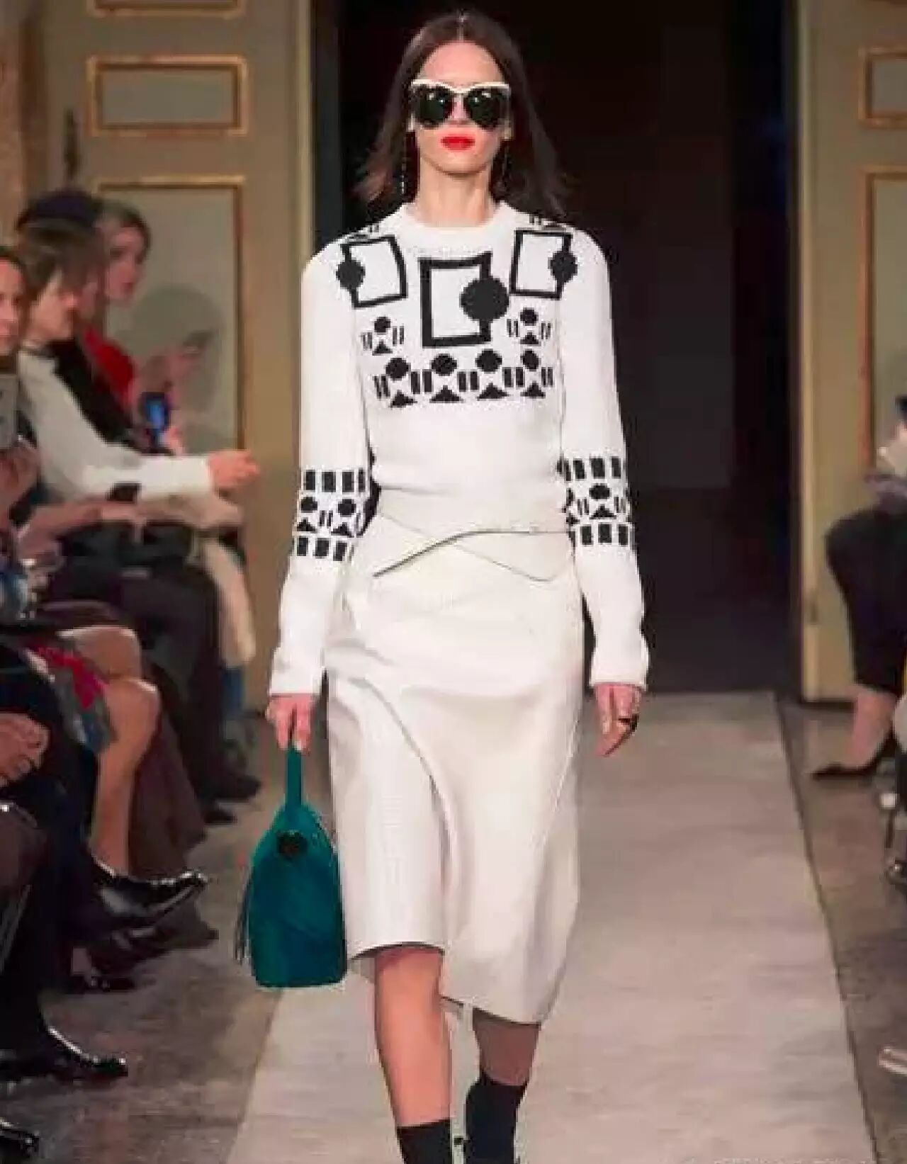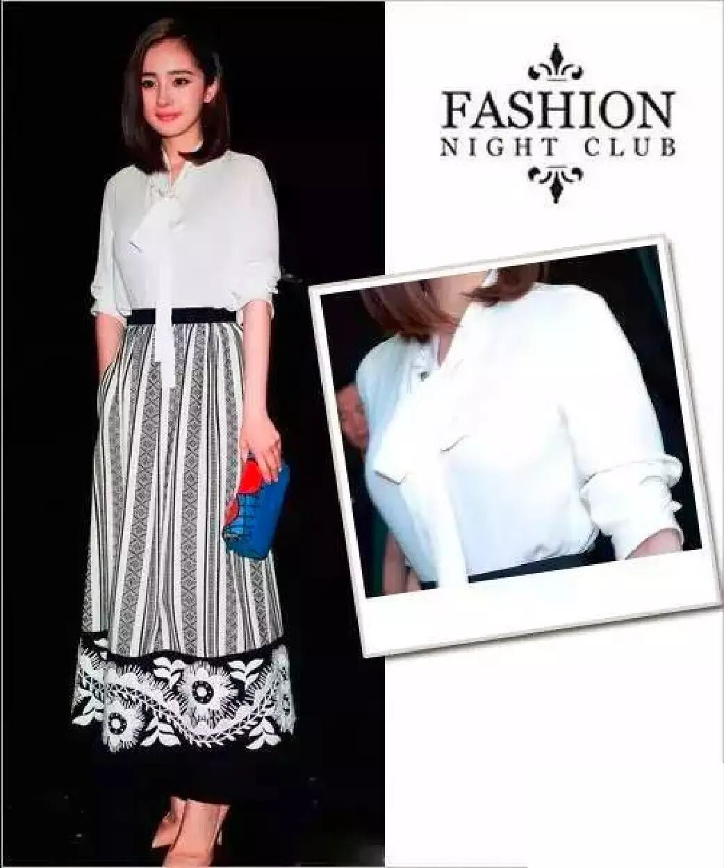 【搭配示范】:白色衬衫+印花长裙 【小编点评】:白色衬衫搭配一件黑白拼色的印花长裙,十分优雅。