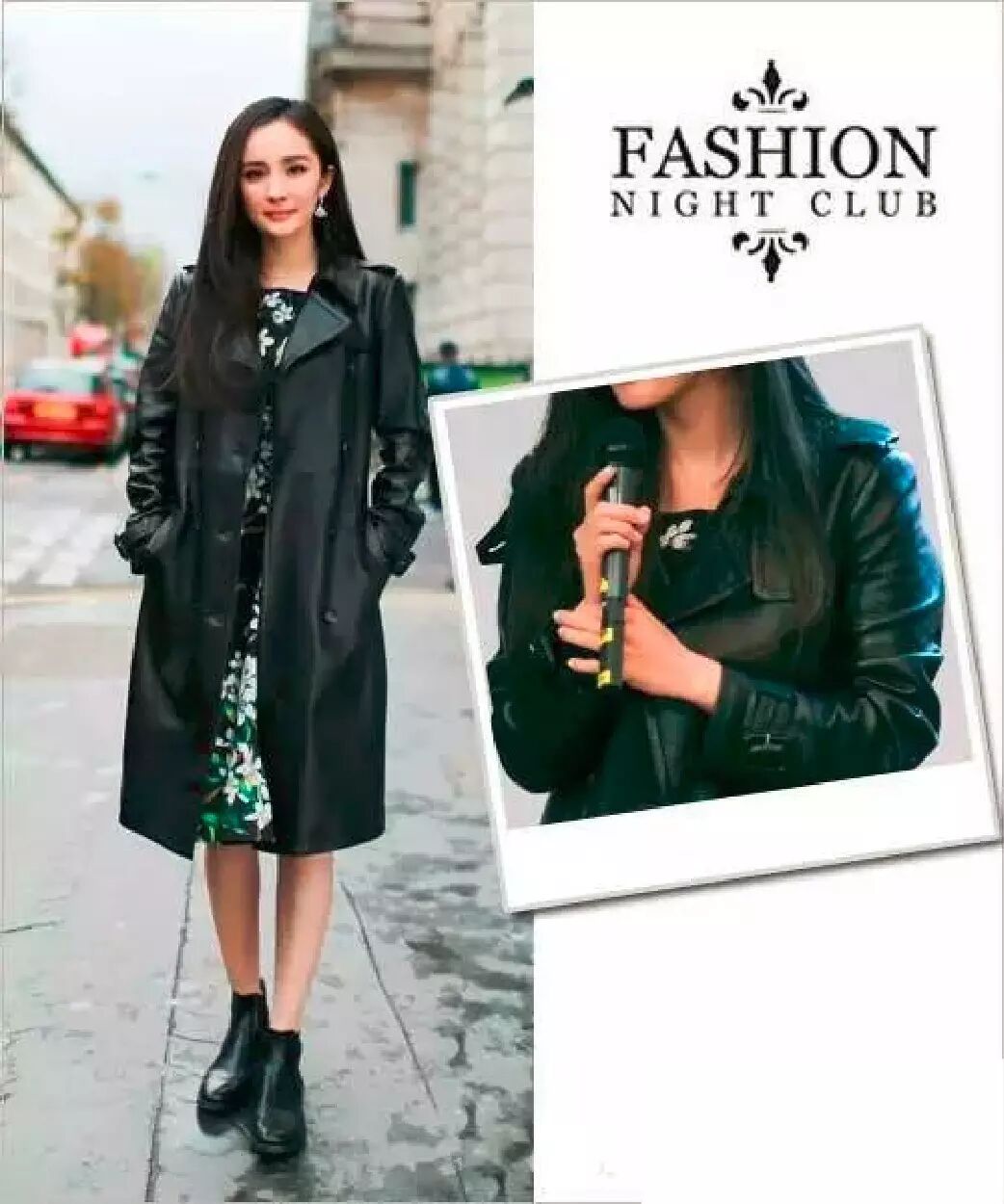 【搭配示范】:皮衣+印花长裙 【小编点评】:硬朗的皮衣搭配印花长裙,既时髦又女神。再配上一双黑色短靴,气场十足。