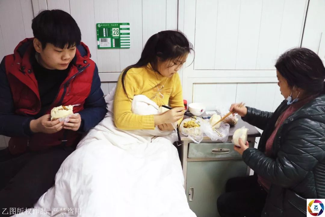 午饭时分,河南南阳医专附属医院病房里,妈妈张延金买来一份盒饭和两个馒头,这是一家三口的午餐。生病的女儿范海莹吃过后剩下的妈妈吃,儿子范海山则啃两个馒头。这段时间,一家三口在医院里的生活都是这么过,有时候甚至为下一顿饭都犯愁。
