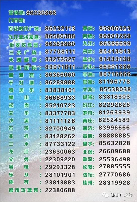 咨询或预定可直接发送姓名+手机号码+线路名称,将会有专人联系跟进噢!更多线路详细请咨询:86228822或佛山广之旅各大营业部。点击右上角可将此资讯分享到您的朋友圈!