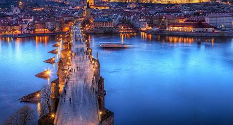 查理大桥始建十四世纪,走在桥上俯瞰捷克母亲河伏尔塔瓦河,据说只要用心触摸石雕像会带来幸福。
