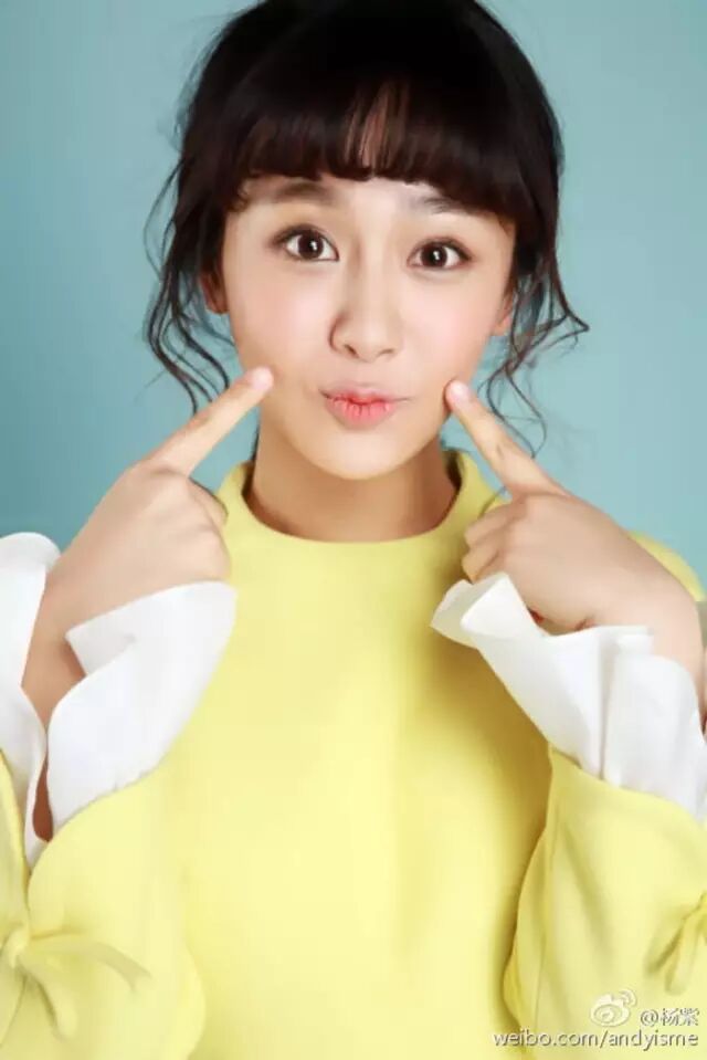 杨紫脸型算是鹅蛋脸,但是额头和下巴的比例相差比较大,于是会显得额高下巴短。她在选择发型都不会避开各种刘海,就算是没有刘海她也会从头发两侧进行调整。像这样全部将头发扎上去还是少见。▼