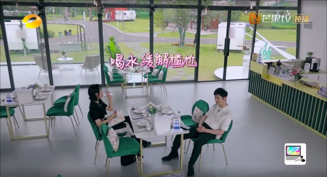 幸好周也和丁真很快到来,周也和黄晓明同是北电毕业,所以相对有共同话题,4个人的氛围总算活络一些。