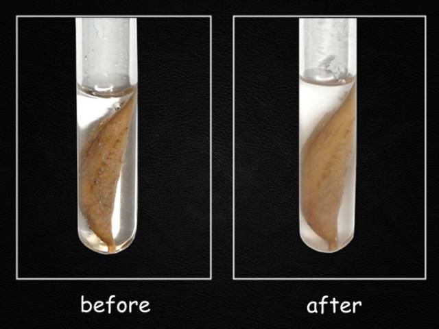 测试方法:将已经褐变的块状马铃薯放入试管,加入10mL蒸馏水,再加入1mL精油样品进行溶解。30℃200RPM反应15分钟,对比块状马铃薯颜色变化。