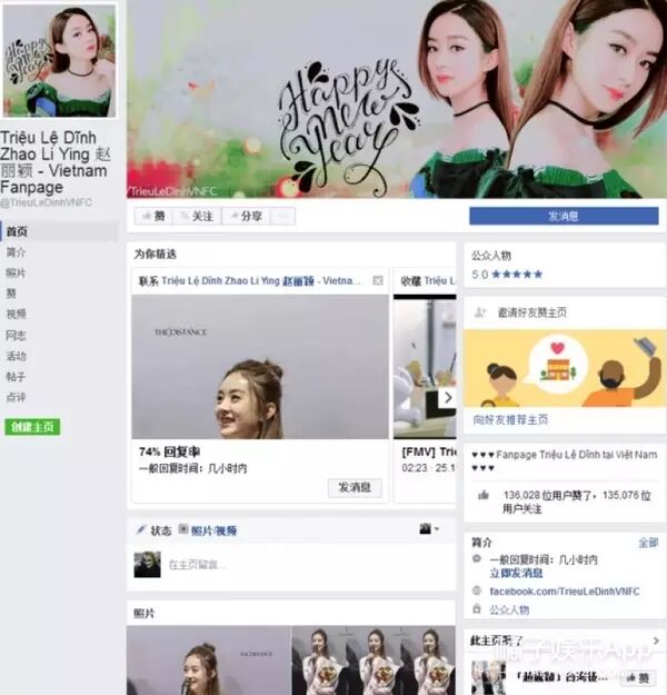 关注人数是136028,最新的一条信息是赵丽颖在《乘风破浪》的路演见面会上的图片。