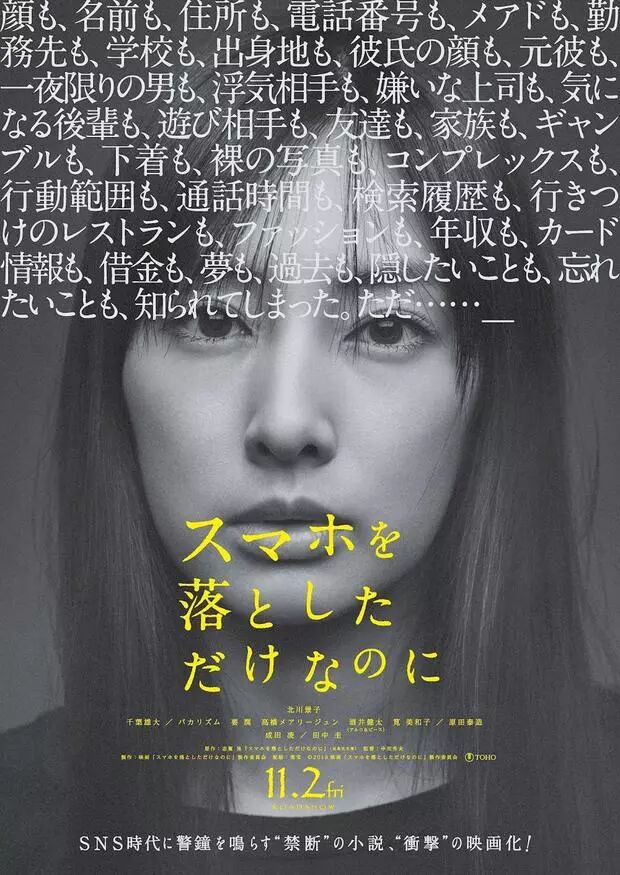 由中田秀夫执导、北川景子主演的悬疑片《虽然只是弄丢了手机》近日发布先导预告。影片定档于11月2日在日本上映。