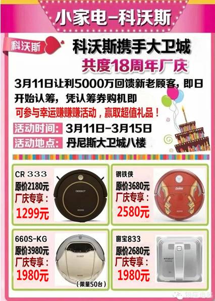 『科沃斯』18周年钜惠!国民暖男钟汉良助阵! 丹尼斯大卫城 港台男星 2016-03-11 18:55:38 382 创作不易,用心坚持,欢迎请BaGua喝几杯爱心咖啡!打赏并支持本文 打赏并删除本文 3月11日-3月15日 ,国民暖男—钟汉良推荐产品,家庭服务机器人领导品牌科沃斯18周年庆,价格震撼来袭,丹尼斯大卫城店独享 !大明星都在用科沃斯扫地机器人奥!辣妈姚晨的卫生小助手科沃斯顾客微信使用满意分享科沃斯机器人抄底大回馈凭认筹券购机即可获得:1科沃斯丹尼斯大卫城8楼电话:0371-55203128 创作不易,用心坚持,欢迎请BaGua喝几杯爱心咖啡!打赏并支持本文 打赏并删除本文 感谢您的支持鼓励,我会继续努力的!文章地址:用户邮箱:打赏金额:USDT 请输入数字点击”去打赏“,即可进行打赏支持本文章哦 钟汉良 About the Author 丹尼斯大卫城 功能介绍:关注丹尼斯大卫城官方微信,即时收取实时信息. 官方认证:郑州丹尼斯百货有限公司 Related Posts Gucci 2018春夏系列梦幻上市 2018-03-18 11:45:06 『家居』虎牌,这是一份能捧在手中的温暖 2017-02-17 19:01:06 『娇兰』“治愈微电影”大结局,由你来当杨洋的女主角 2016-04-16 14:44:45 『娇兰』与亲蜜男友杨洋,共赴“治愈之岛”之约 2016-03-31 16:11:06 『科沃斯』18周年钜惠!国民暖男钟汉良助阵! 2016-03-11 18:55:38 发表评论