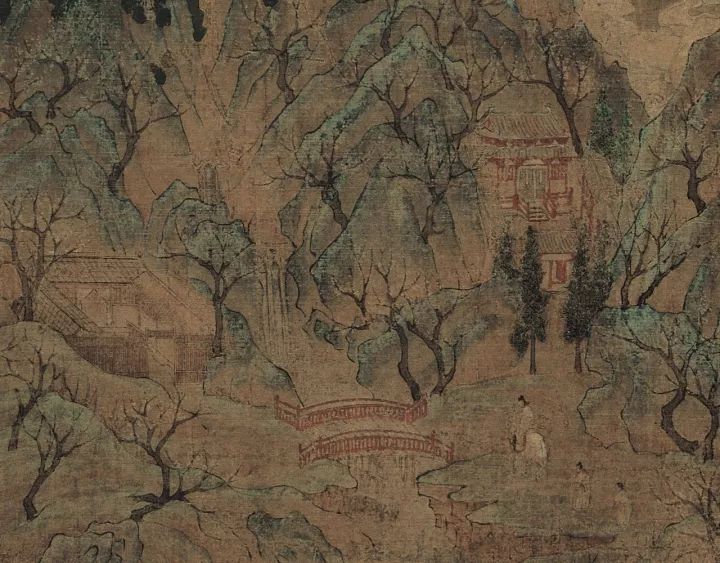 若说它是假的,也很难说。因为画的绢素实在相当旧,格式也甚古。从格式看,可能是唐人画。即或是唐人手笔,也可能属于《宣和画谱》记载那四十多幅《游春山图》中之一幅,还可见出隋人山水画或展子虔画本来样子。尤其是彦悰、张彦远意见,有些可以作为展画注解。