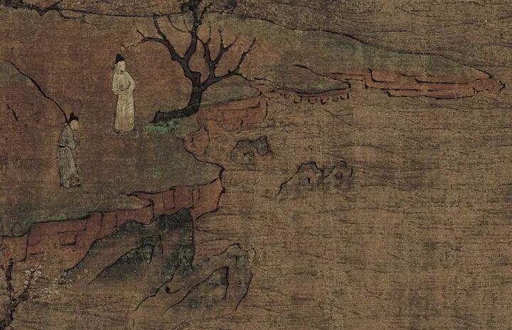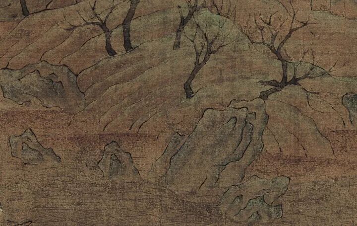 笔者半年中有机会前后看过这画八次,可说十分幸运。凡看过这个尺寸较高小横卷的人,在记忆中必留下一点印象:不能如传说动人,却会引起许多联想。尤其是对于中国山水画史还感兴趣的人,可能会有些意见,即这幅画在设计上虽相当古,山石处理上也相当怪,似熟习,实陌生。