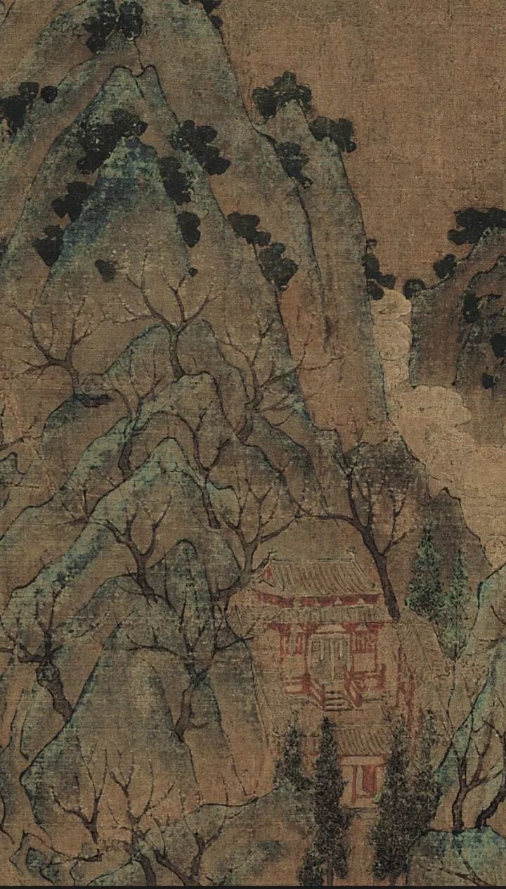 《容台集》说:“李昭道一派为赵伯驹,伯驹精工之极,又有士气,后人仿之者得其工而不得其雅,若元之丁野夫、钱舜举是已,五百年而有仇实父。”一脉传来,均不与王维细笔山水相通。