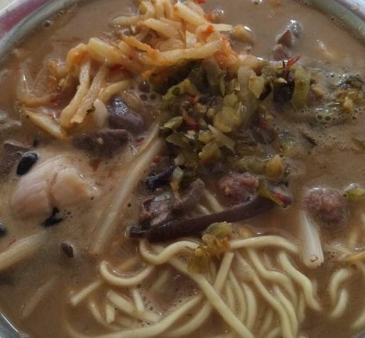 点评:老友面很好吃,面不烂,很清爽!汤味浓郁,料足!感冒鼻塞的话就加酸加辣,可能比吃感冒药还管用。