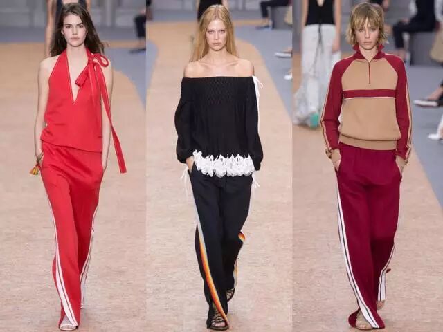 与典型的运动风品牌不同,Chloe 2016春夏女装秀如电影胶片一般,捕捉女孩活力四射的乐观主义精神和不经意间的性感,在优柔浪漫与精致运动的融合中渗透出简洁摩登的力量感,真丝针织一侧开口条纹运动裤因精致材质的使用呈现出女装独有的细致!