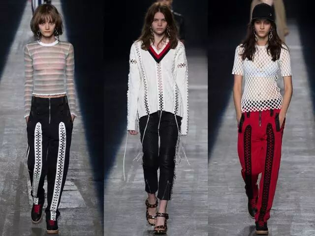 在当今纽约时尚界最有影响力的华裔设计师之一Alexander Wang所推出的2016春夏系列让人感叹:在运动纹理的辅助下,时装也可以很舒适实穿,极致的街头运动与High Fashion的结合随处可见,超短吊带背心+阔腿条纹裤简单实穿,但也让我们不得不承认这就是王大仁,网格上衣搭配毛边牛仔短裤,披上一件拼接夹克,踩一双轻便的运动鞋,旁若无人的高级运动时装即刻出街。