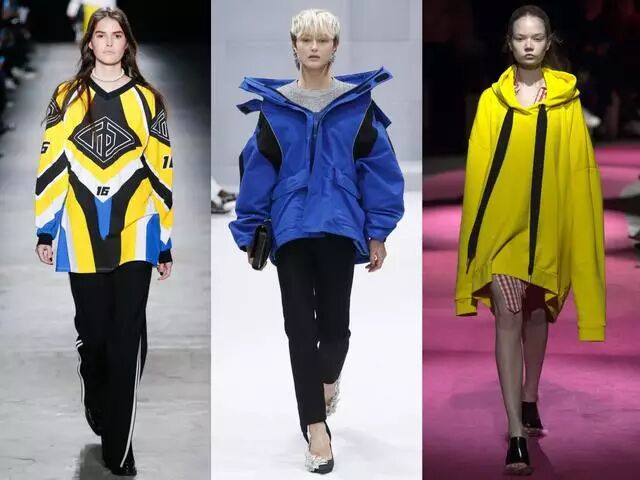 除了这些当红小鲜肉,各个时尚之都也“动”了起来!伦敦超模们在大衬衫披上棉纺运动帽衫,纽约女郎宽阔的“两条杠”运动裤套上足球队服,就连Balenciaga的大秀上也不乏穿着大敞领冲锋衣的娇娃,人们不禁惊呼:“运动风回来了”!