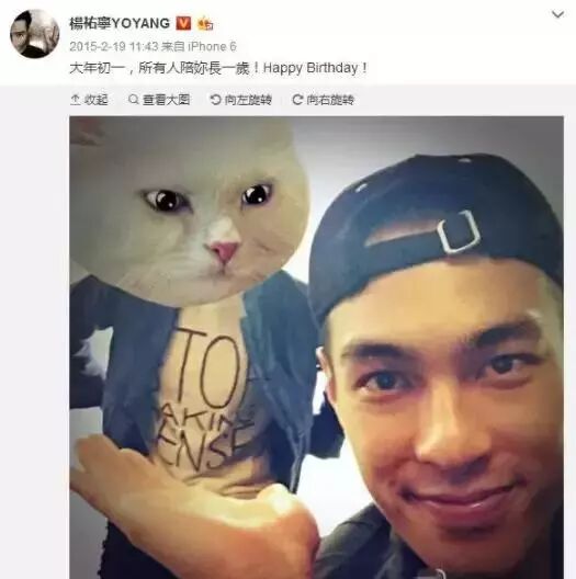 对这个猫头杨祐宁也是非常配合,转发还配文:喵!有没有被甜到!