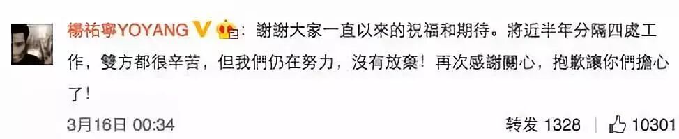 但杨祐宁表示没有放弃,虽然双方都很辛苦,但是仍在努力。