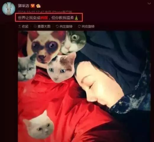 还恶搞,把郭采洁p成猫头,这是报复吗?看得出来两人的恋情发展的非常顺利,两人也是非常恩爱。