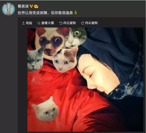 郭采洁秀恩爱的方式就是照片中的的猫头一定就是杨祐宁。