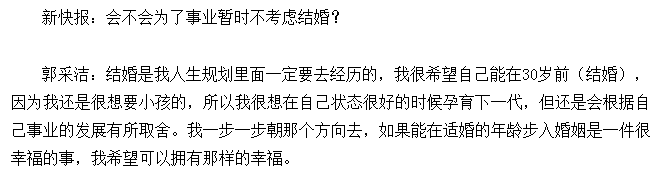 因为母亲难产去世,郭采洁曾说希望30之前能结婚生子。
