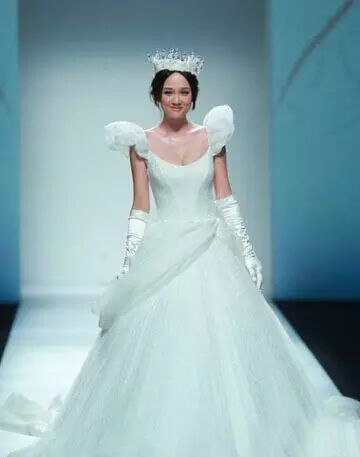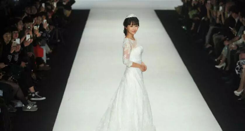 2015中国国际时装周AOLISHA魏新坤婚纱礼服秀,杨紫身穿白色婚纱现身T台走秀,一股精灵的既视感。
