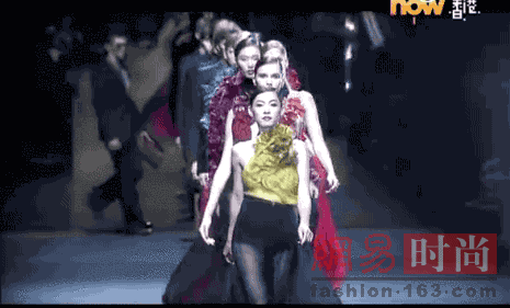 2013伦敦秋冬时装周的T台,为中国设计师吉承压轴走秀,一袭拖尾黑色长礼群演绎吉承“鱼聊”主题。作为王珞丹的T台处女秀,看得出丹丹当时有点小紧张哦。