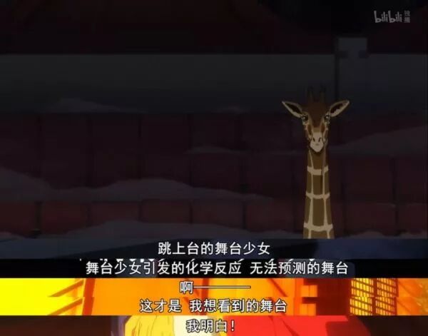 “舞台少女引发的化学反应,无法预测的舞台,啊——这才是我想看到的舞台,我明白!”——BY《少女☆歌剧 Revue Starlight》的长颈鹿