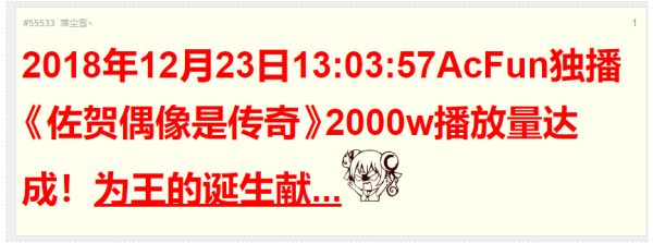 而Acfun的几经转手,运营情况糟糕,同样人气低迷,甚至前段时间差点关站的消息国内漫迷都很清楚。播放《佐贺的偶像是传奇》达到了2000万播放量……