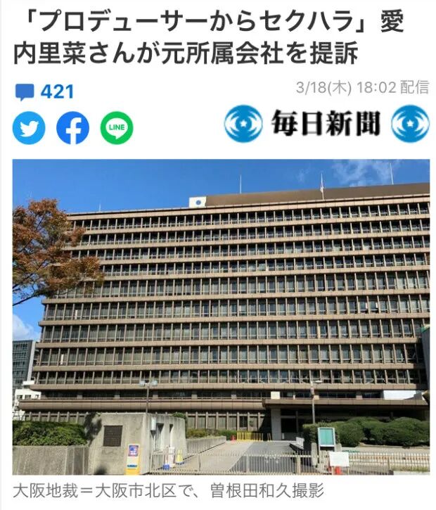 日本演艺圈艺人多,事情也比较多,其中不乏职场性骚扰,前几天部屋君给大家发过一位年轻女演员遭到公司女老板性骚扰的新闻。(回顾戳《日本娱乐公司的女社长,竟然性骚扰旗下女艺人....》)