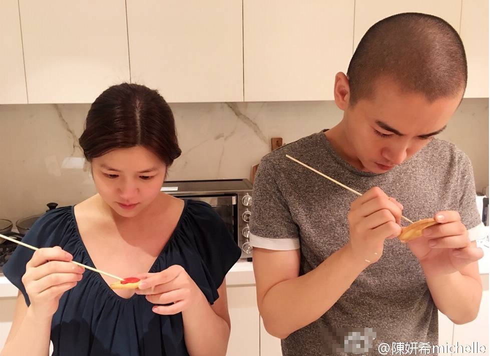 12月14日,陈晓已在台湾,等待宝宝出生。陈妍希还晒出夫妻俩做圣诞饼干的温馨图片。