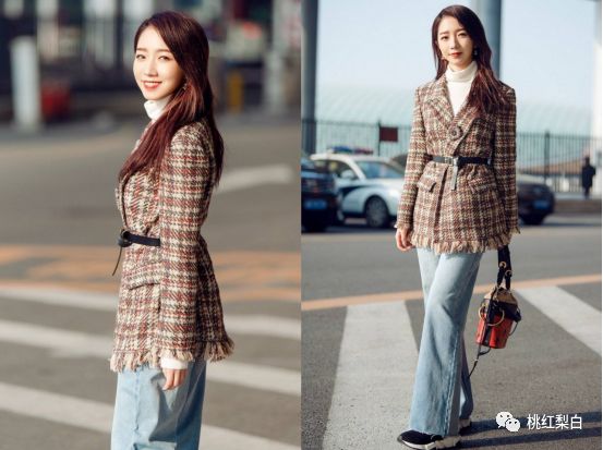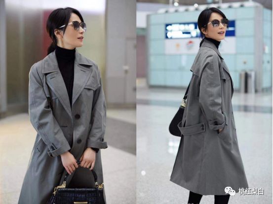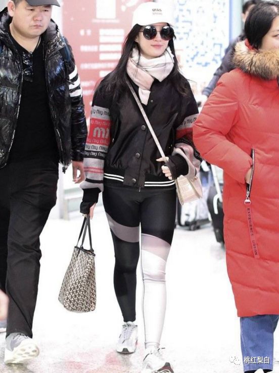 其实这一身单看上半身,也还算说得过去,赶飞机就是要舒适保暖为主,但是镜头往下一拉,请问这个拼色打底裤到底是怎么想的啊?本来刘亦菲就是小腿比较粗的类型,应该尽量避免这种过于贴身的剪裁设计,结果非要怎么显胖怎么穿......