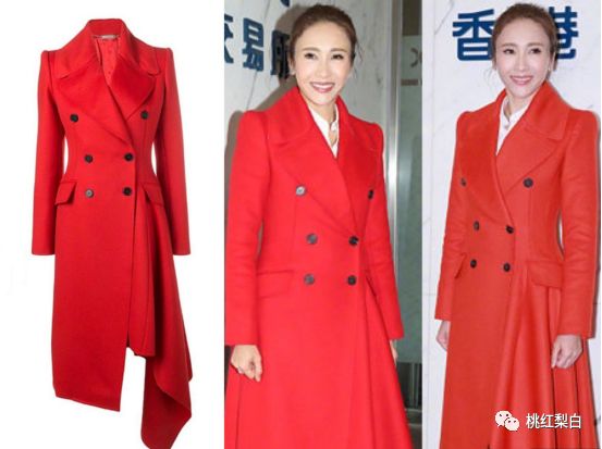 正红色的确很适合这种正装庆功场合来穿,但是McQueen的这件大衣,垫肩部分实在是有些小夸张了点,把黎姿穿起来看着十分雄壮,还有种被架起来的感觉,厚重感极强。