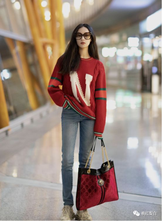倪妮的私服,向来都是偏基础单品混搭模式的,这一身厚实毛衣+水洗牛仔裤的模式,就是可copy度非常高的一身,大红色本就是自带高光的选择,配上同样抢眼的红色链条包和百搭小白鞋,很会平衡整身颜色和风格,不看镜头都很有大片feel。
