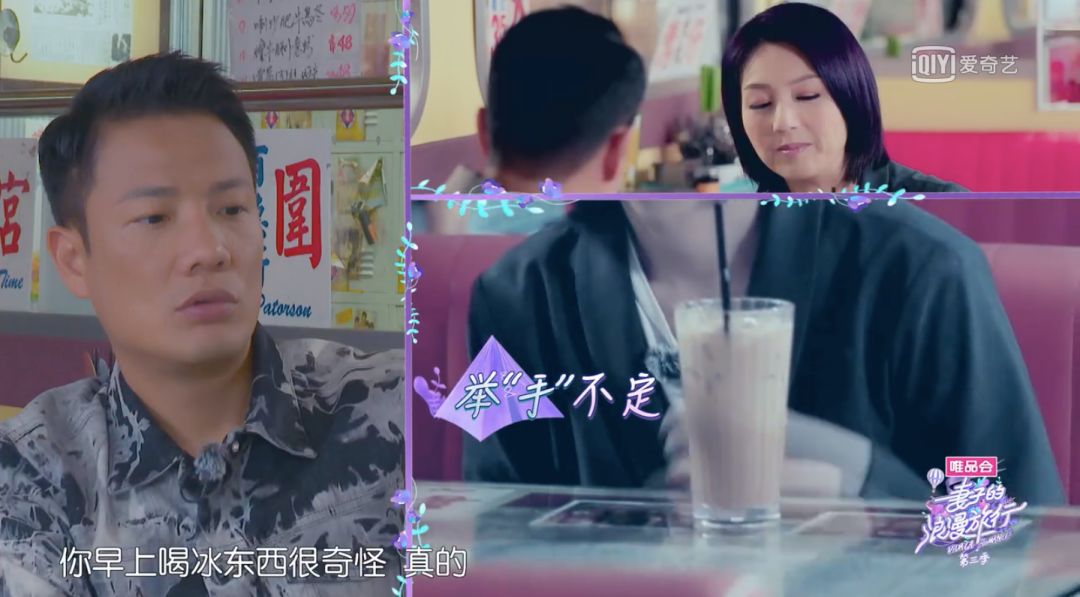 一起去餐厅吃饭,杨千嬅要喝冰奶茶,丁子高不让,说道:“大早上喝冰,你真的很奇怪诶。”