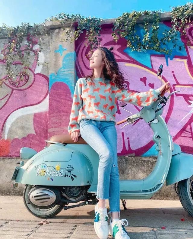 李沁上身穿了件动物提花针织衫,下身搭配的是牛仔裤,如此清新的色彩组合,展示出青春少女活力感,而李沁却是坐在了一辆电动车旁,将双目微闭,长长的卷发散在肩膀处,飘逸而有动感,很是增添气场。宽松的针织衫廓形,带来休闲惬意范儿,将年轻人特有的朝气感展示,下身穿着的牛仔裤为紧身式,再一次将李沁的苗条腿型给勾勒出来,异常吸睛,裤脚有流苏毛边自由摇曳,展示出街头不接范儿,脚踩白色拼接式贝壳鞋,很是有青春活动感,充满了年轻时尚魅力。