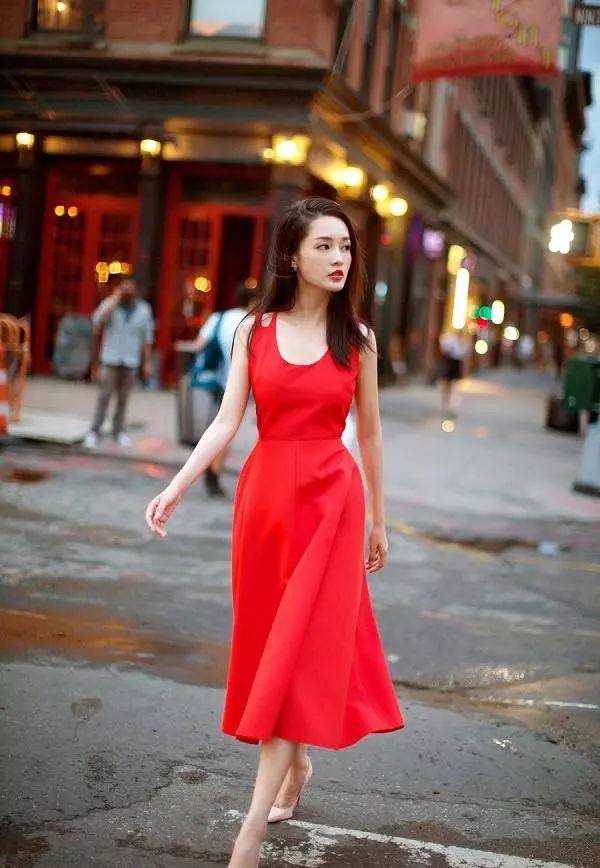 李沁外出游玩,穿着就更为简洁明了了,仅仅以一件红色无袖长裙出街,却是带来明艳吸睛的优雅范儿。李沁将秀发很是随性的散开,更是增添了十足的妩媚柔情,一抹红唇与衣裙的色彩保持一致,显示出其丝丝小性感,纤长的脖颈线条被展示出来,尽显迷人女人味,与圆形的衣领相得益彰。衣裙为收腰式,黄金比例将衣身分割,打造出三七分的身材比例,很是协调自然,并且将李沁的盈盈一握小蛮腰展示,很显身材美感。李沁脚踩白色浅口高跟鞋,在异域街头迈步前行,裙摆飘逸,洒脱自信。