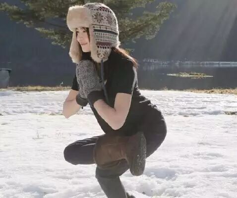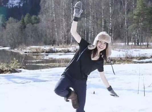 冬日雪地里练习瑜伽,阳光的笑容明媚了整个世界